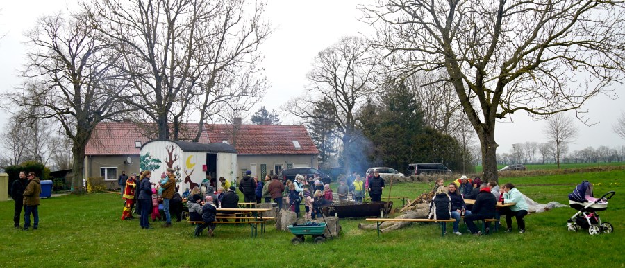 Eine Woche nach Ostern fand auf dem Dorfplatz in Schmatzin ein Osterfeuer statt. Zahlreiche Kinder nutzten die Gelegenheit, um Ostereier zu suchen, auf Stelzen zu laufen und auf der Slackline ihr Geschick zu beweisen. Etwa 50 Gäste aus Schmatzin, Schlatkow und Wolfradshof genossen die gemütliche Atmosphäre am Feuer bei Bratwurst und Bier. Es wurde viel gequatscht und man traf alte Bekannte wieder. Trotz des Regens war die Stimmung ausgelassen und die Veranstaltung ein voller Erfolg.