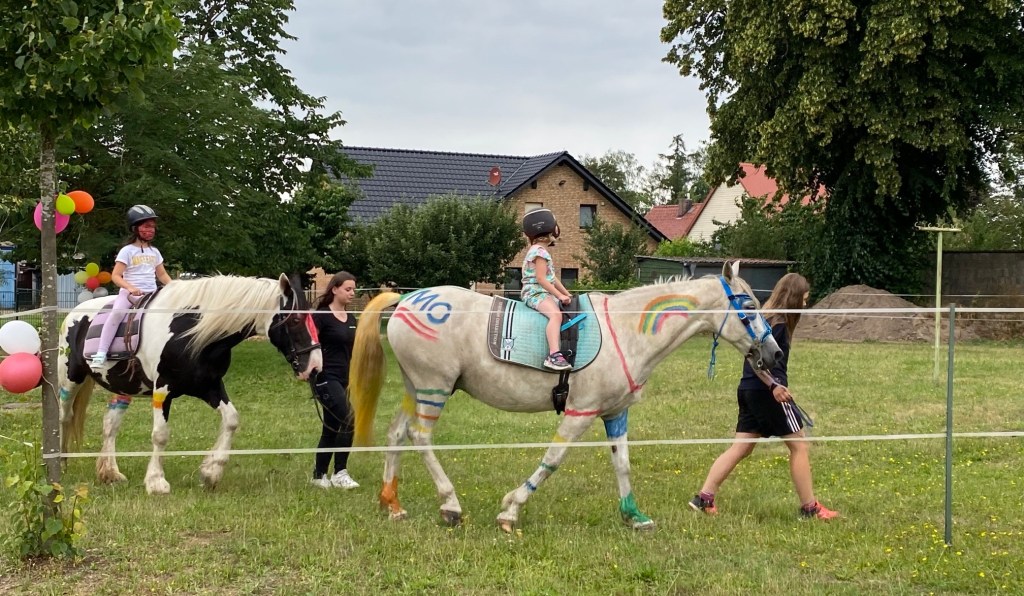 Ab 13 Uhr füllte sich das Festgelände um die Festscheune und den Spielplatz mit vielen Familien aus Schmatzin, Wolfradshof, Schlatkow und der Umgebung. Die Kinder hatten besonders viel Spaß beim Schminken, beim Pferdereiten und beim Malen und Basteln. Die Eltern und Erwachsenen genossen derweil die Köstlichkeiten und erfrischende Getränke.